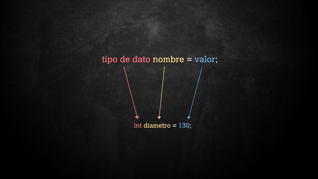 Las variables primero se declaran indicando el tipo, seguido por el nombre. Los nombres de las variables deben ser una solo palabra (sin espacios) y debe comenzar con una letra (puede incluir números, pero no pueden comenzar por un número). Tampoco puede incluir ninguna puntuación o caracteres especiales con la excepción del guión bajo “_”.