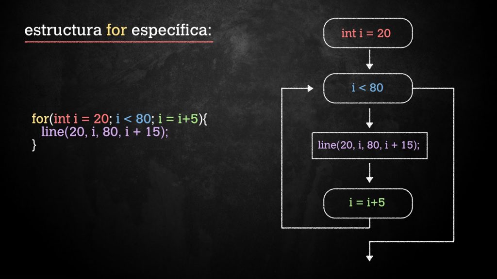 Como ya hemos comentado, un bucle for realiza cálculos repetitivos y tiene una estructura como esta: